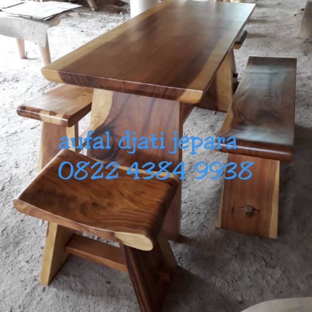 Meja Kursi Bangku Warung Makan Cafe Resto Hotel Minimalis Kayu Meh